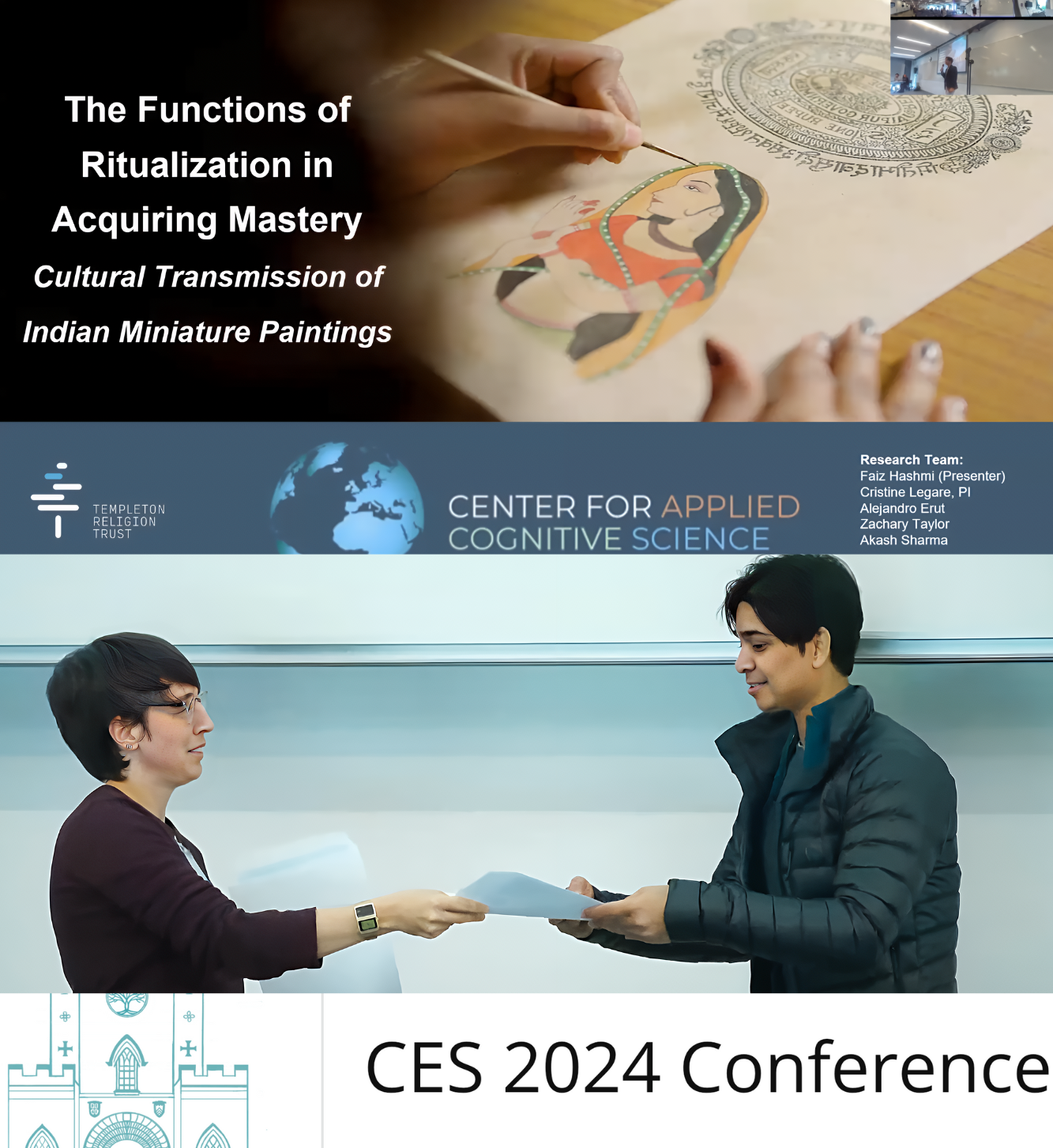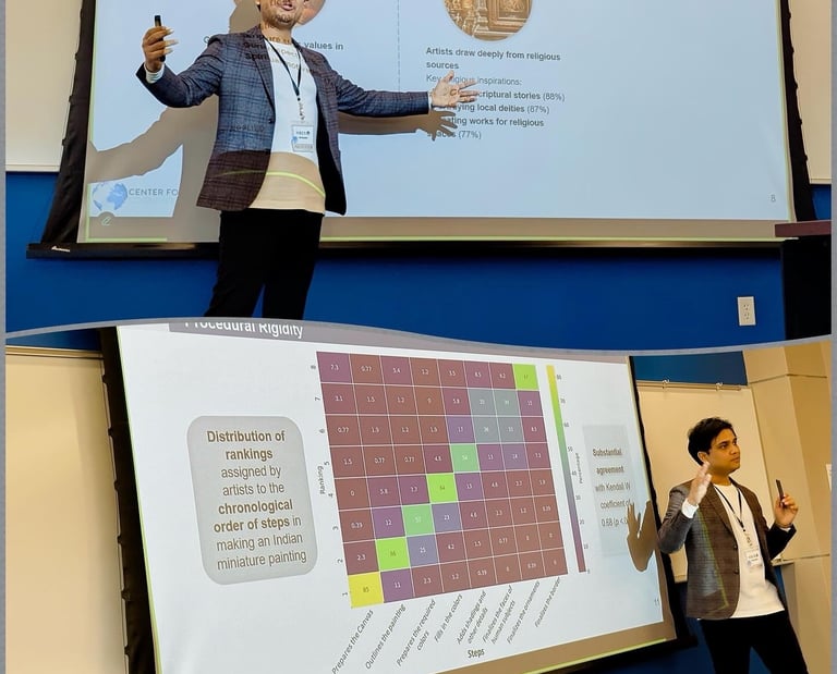 I am honored to have received the Best Global South and Indigenous Presenter award at the Cultural Evolution Society (CES) 2024 conference for my research talk on "The Functions of Ritualization in Acquiring Mastery: Cultural Transmission of Indian Miniature Paintings." The CES 2024 conference was organized at Durham University (England), which brought together diverse scholars to advance the evolutionary science of culture, fostering interdisciplinary collaboration across fields like anthropology, psychology, and sociology. This achievement was made possible through the support of my colleagues at UT Austin: Dr. Cristine Legare, Dr. Alejandro Erut, Dr. Alex Etz, and Zachary Taylor. I am excited about the recognition this brings to our work on cultural transmission and its potential for future research.