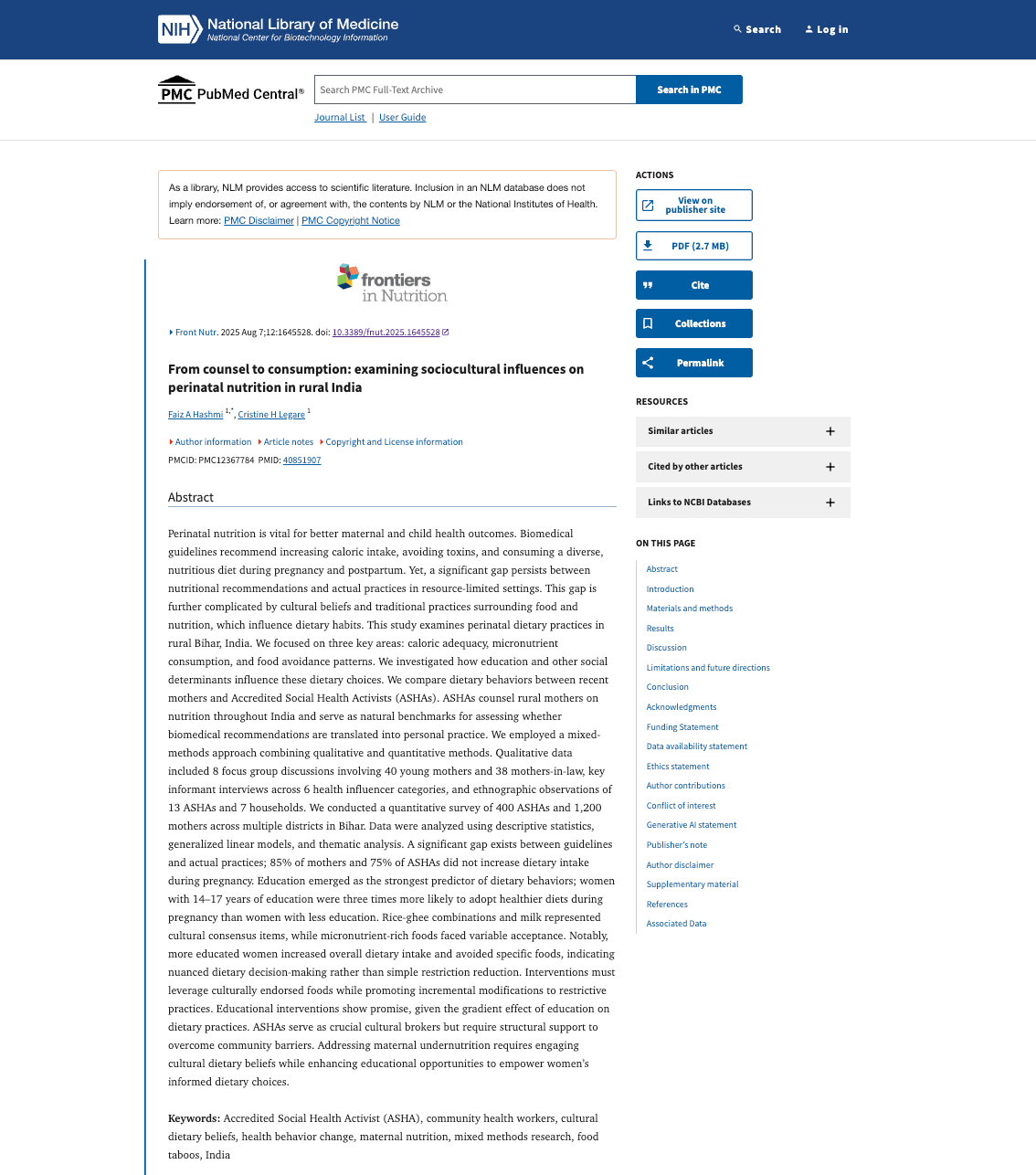 Published in Frontiers in Nutrition (2025) — From Counsel to Consumption