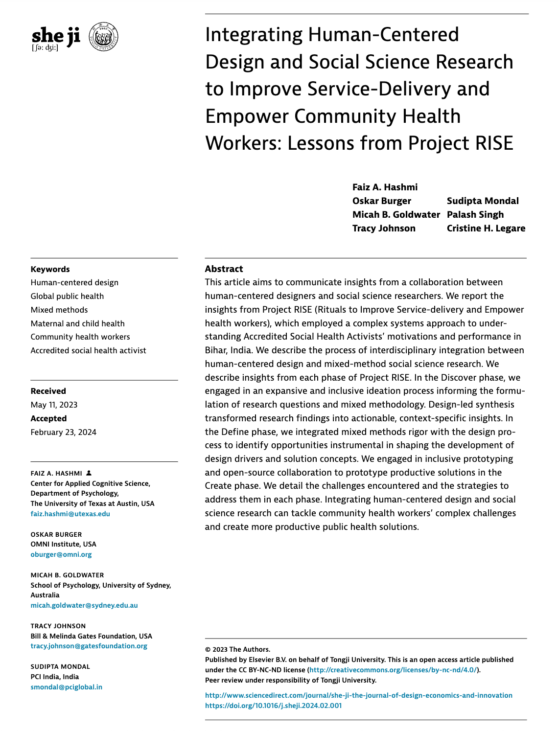 Published in She Ji (2024) — Integrating Human Centered Design & Social Science Research